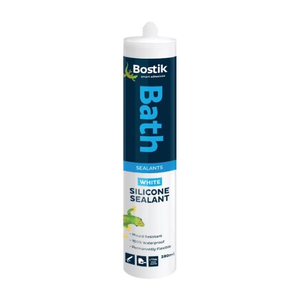 BOSTIK BATH SILICONE SEALANT is a top-quality white sanitary silicone sealant that is perfect for general purpose sealing in and around the bathroom. It is 100% waterproof and mould resistant.